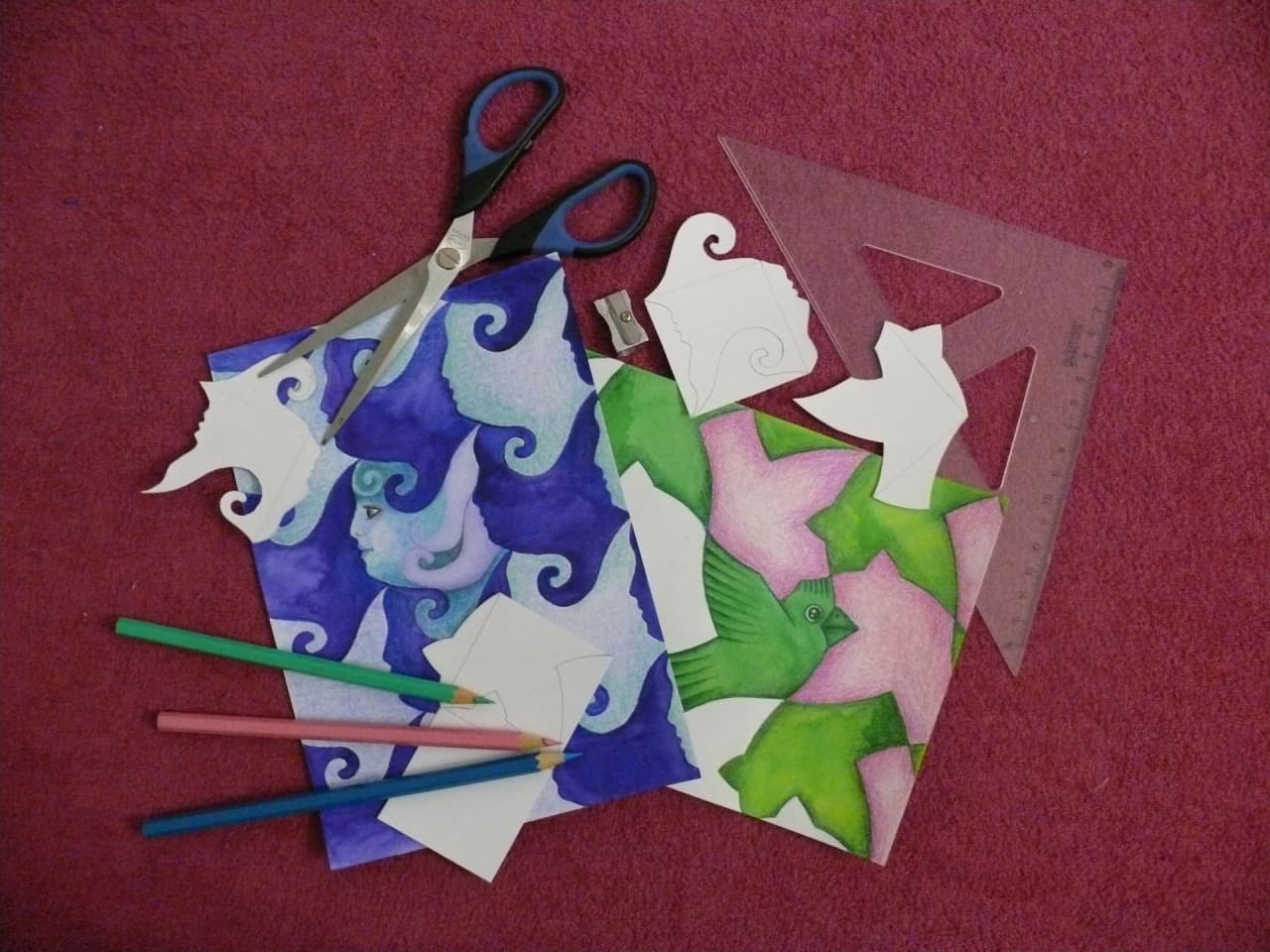 Odhalíte tajemství teselace, vyrobíte si zajímavou mozaiku ze šestiúhelníků, poskládáte si tangramy pomocí razítek nebo vyrobíte fraktálový strom. To vše vás čeká na našem workshopu MATEMATIK UMĚLCEM.