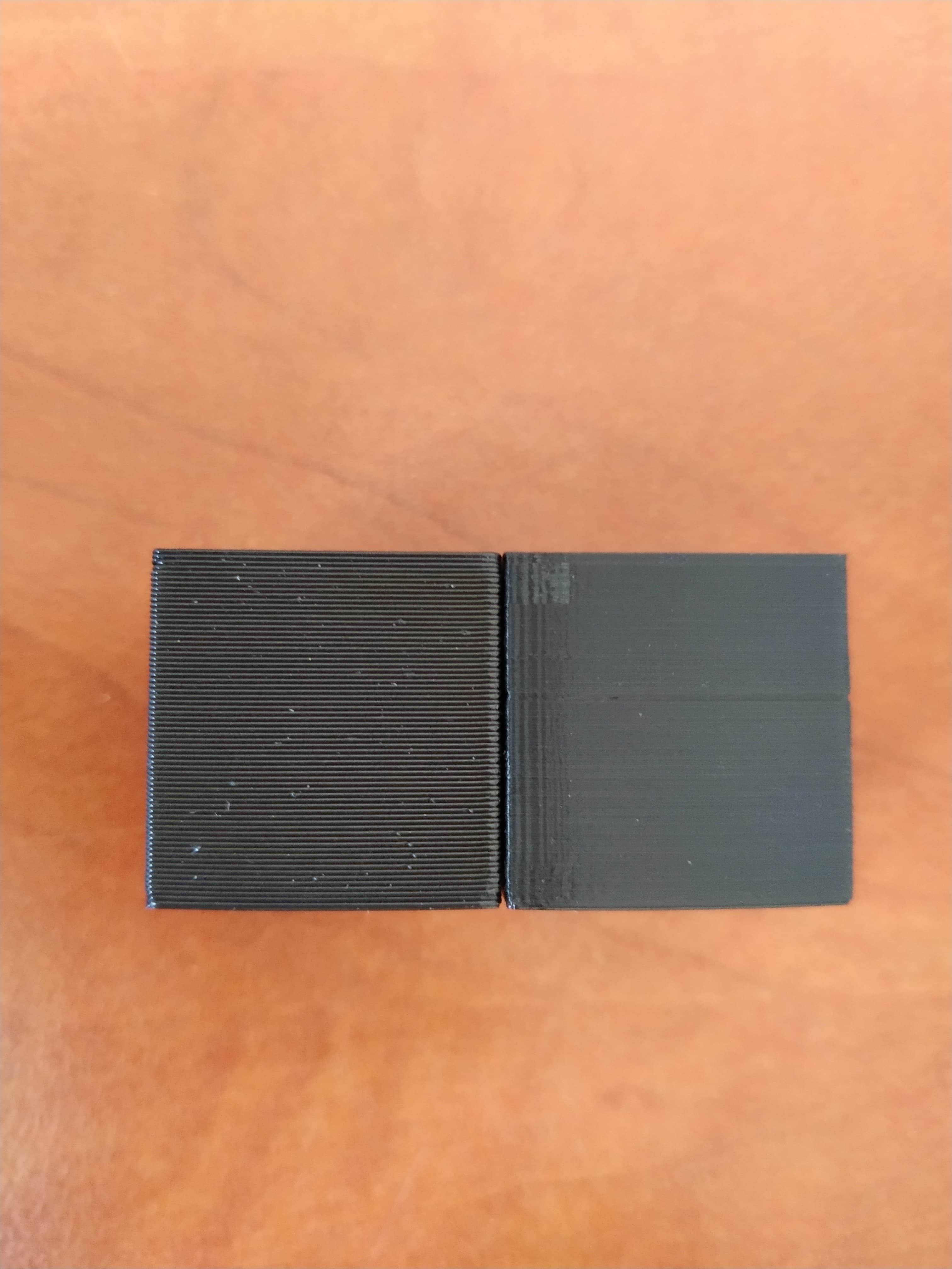 Často kladená otázka bez jednoduché odpovědi. Záleží na druhu tiskárny, výšce vrstvy, výšce modelu, materiálu, výplni a spoustu dalších parametrů. Na obrázku můžete vidět dvě kostičky o hraně 2 cm. Obě jsou z černého PLA, mají stejný plášť i výplň. Ta vpravo má výšku vrstvy 0,3 mm a tiskla se asi 20 minut, ta vpravo má výšku vrstvy 0,05 mm a její tisk zabral téměř 2 hodiny. Přitom na fotce kostek na dlani není rozdíl téměř vidět. Správná otázka tedy zní: “Jak dlouho trvá 3D tisk tohoto objektu s tímto nastavením?” ?