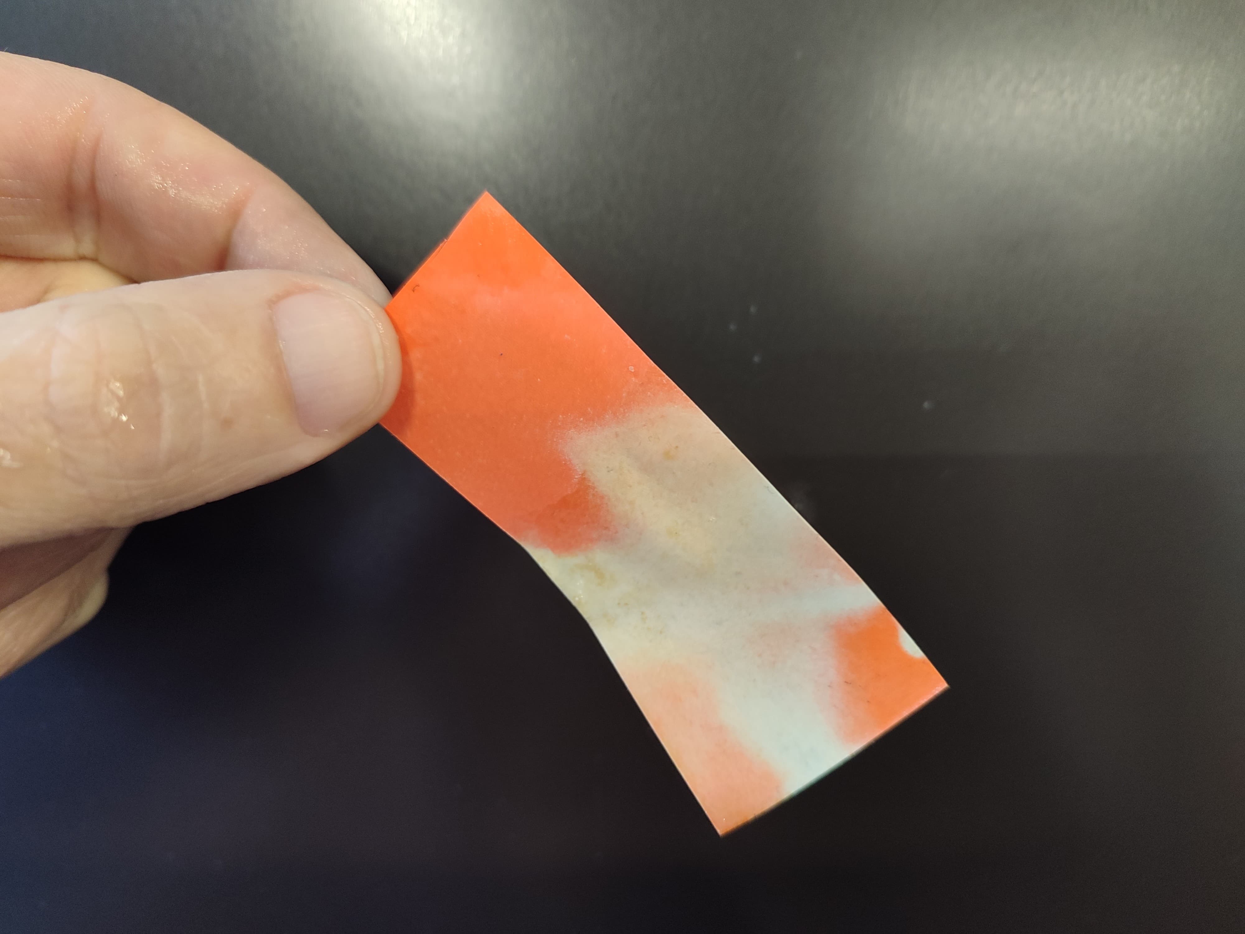 Sodné kationty, které ke katodě taktéž putují, se tu slučují s hydroxidovým aniontem a vzniká hydroxid sodný. To je silná zásada a její přítomnost můžeme snadno dokázat pomocí acidobazického indikátoru. Když například kápneme poblíž katody fenolftalein, zbarví se v zásaditém prostředí hydroxidu sodného do fialova:
