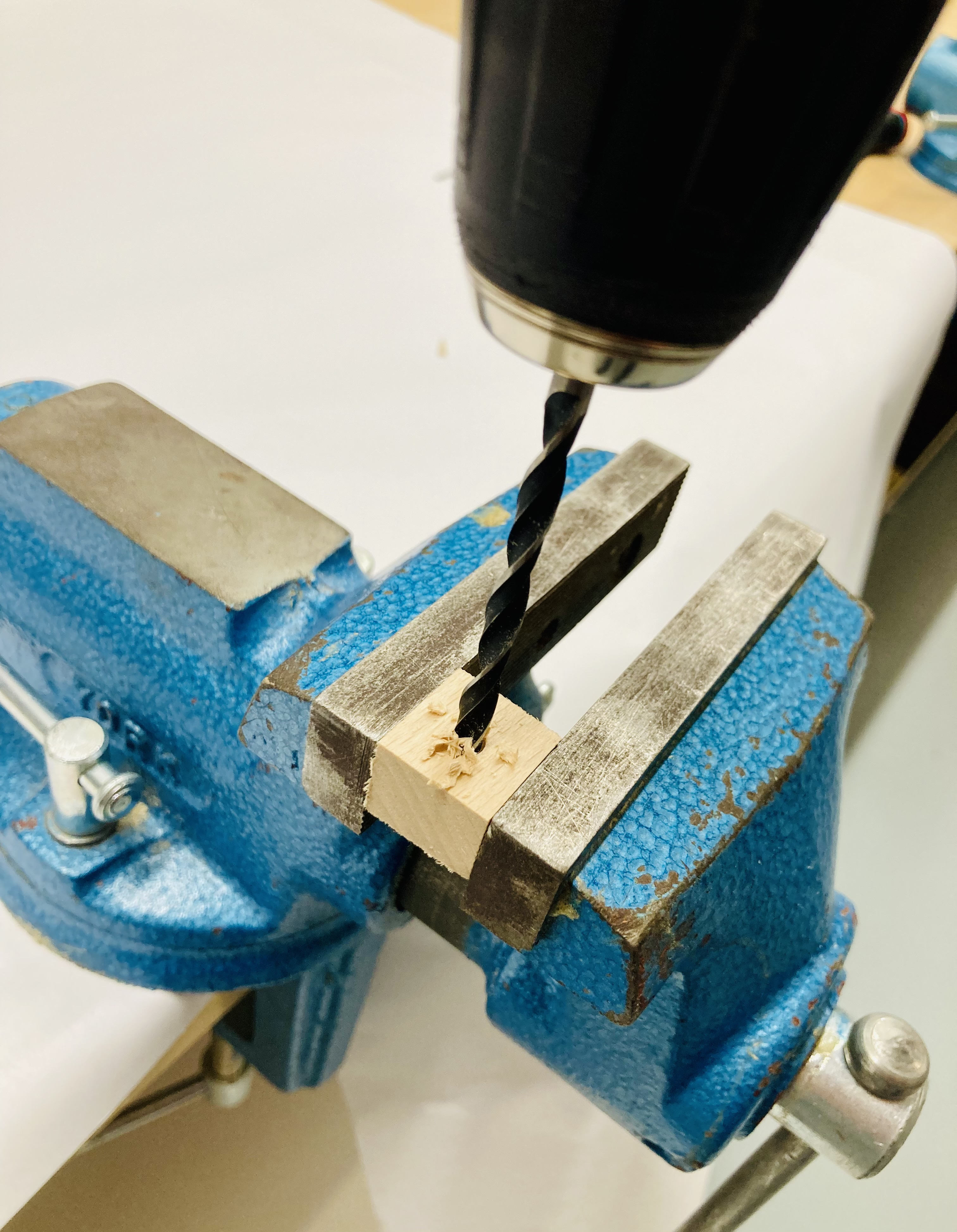 - Provrtejte vrtačkou díru a vyzkoušejte, zdali se na špejli volně otáčí.