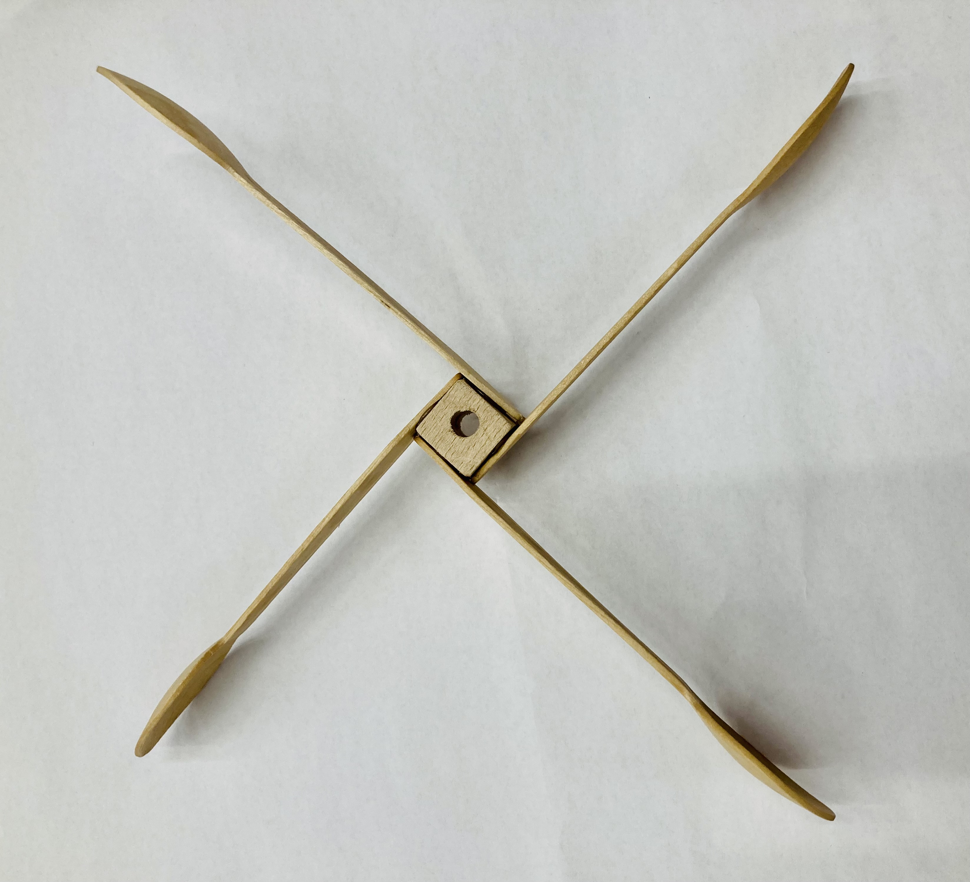 - Přilepte jednotlivé lžíce na krychli a chvíli podržte, aby lepidlo zaschlo.