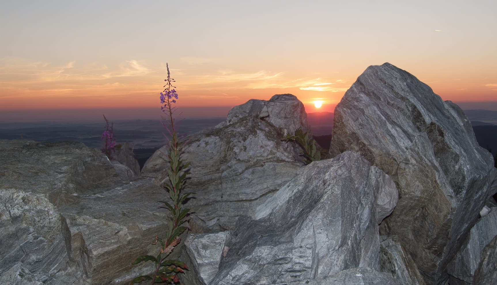 Fotografie vycházejícího Slunce z lomu Stanislaw v polských Jizerkách