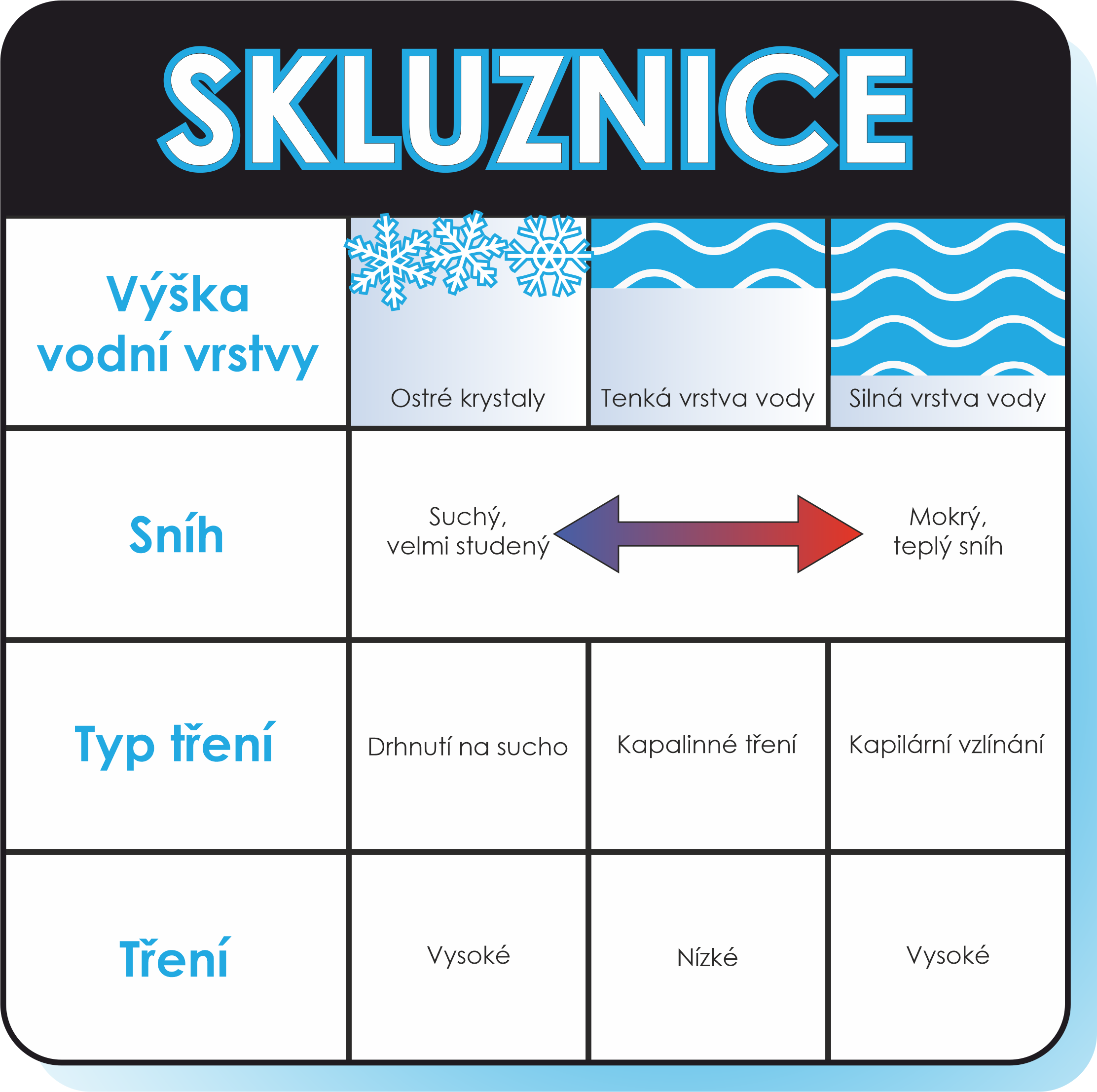 Když si to svištíte třeba u nás v Jizerských horách, vzniká při pohybu lyže po sněhu teplo v důsledku tření. Díky němu sníh pod lyží roztaje na tenkou vrstvu vody a po ní vám lyže klouže. V čem je háček? Pokud je vrstva vody příliš tenká nebo vůbec nevzniká (např. kvůli suchému sněhu či příliš nízkým teplotám), dře se lyže o ostré krystaly sněhu a s ní se dřete i vy.