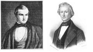 Vlevo John Couch Adams (1819-1892), vpravo Urbain Le Verrier (1811-1877)