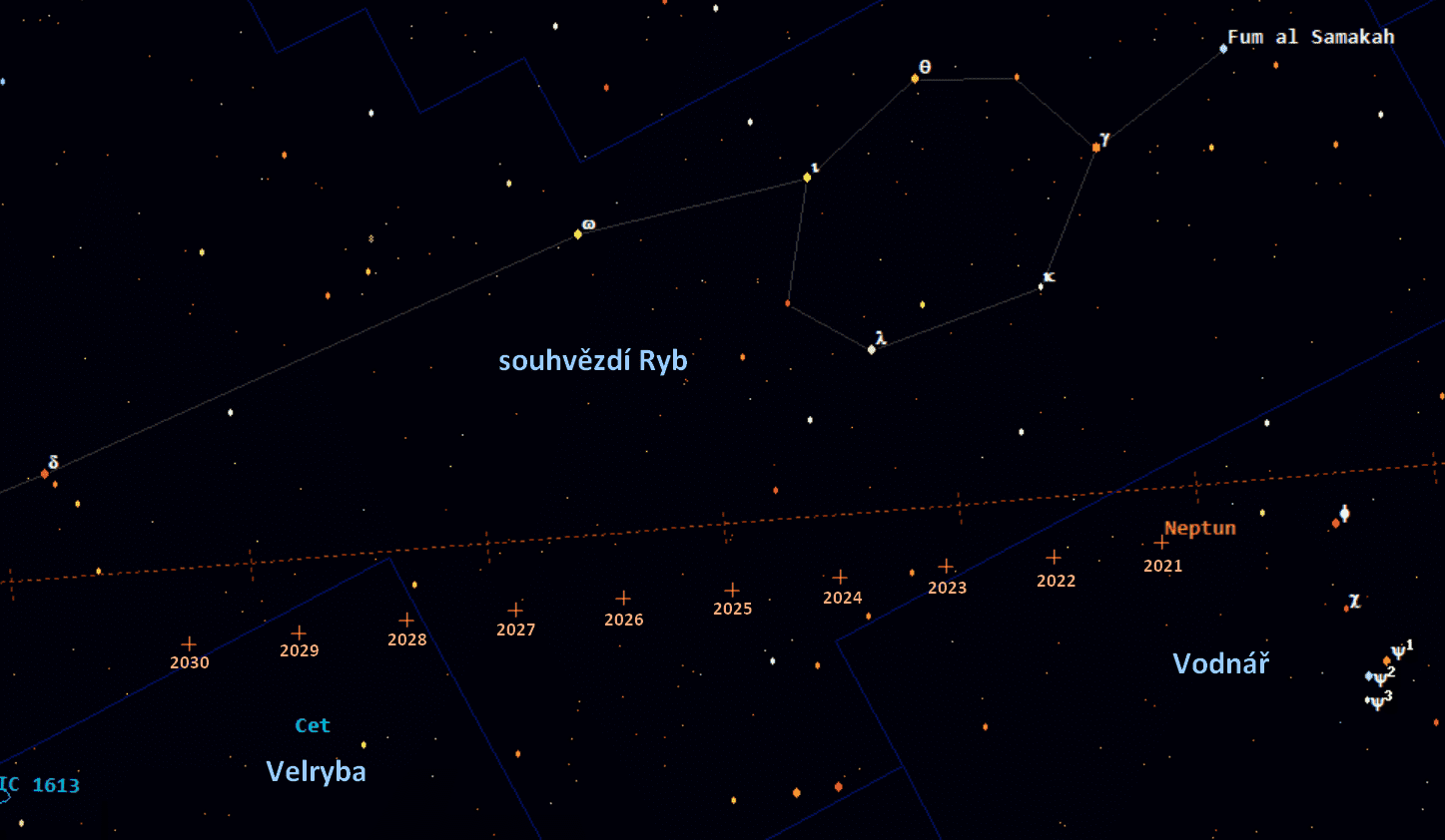 Pozorovat v současnosti Neptun není tak obtížné. Díky přesným předpovědím počítačových planetárií si můžeme jeho polohu ověřit snadno i my v terénu. Jako slabou hvězdičku zhruba osmé velikosti (neviditelnou okem), jej ukáže již triedr. Ve větším dalekohledu při velkém zvětšení (nejlépe nad 200×) si všimneme i jeho malinkatého kotoučku modré barvy (průměr pouhé dvě úhlové vteřiny). Největší amatérské dalekohledy pomohou odhalit také Triton. Neptun se bude dále pohybovat na hranicích Vodnáře, Ryb a Velryby, tedy souhvězdí v přibližně stejné části oblohy, kde byl v roce 1846 objeven. Nejlepší období k jeho pozorování tak bude připadat na podzimní měsíce.