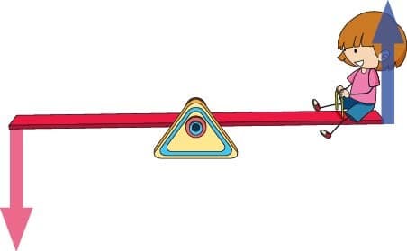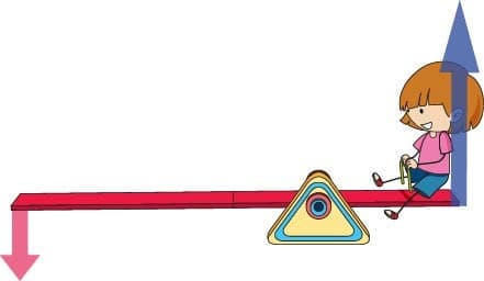 Červenou silou vy působíte na tyč, modrou silou tyč působí na chlapečka. A když jsou obě části tyče stejně dlouhé, tak taky obě síly jsou stejně velké. Kdyby ale vaše část páky byla delší a chlapečkova kratší, tak by vám stačila menší červená síla: