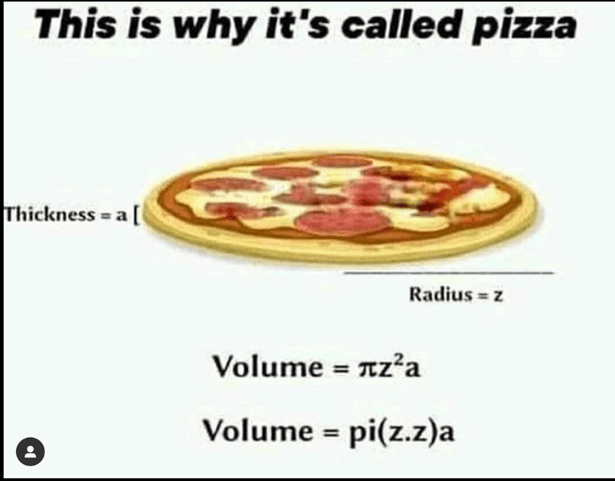 S = π*r2 (S = obsah pizzy, r = rádius = poloměr pizzy)
