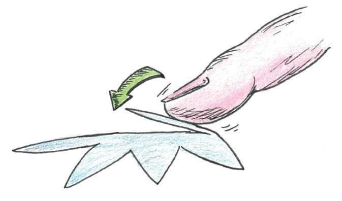 Pozor, přehyb nesmíte zarýhovat nehtem, stlačte jej pouze bříškem prstu.
